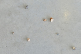 My work deals with processes of dissection as a means to unfold different layers of an object and reveal its materiality. In Wear on Stone (Essay II), I have asked several people to help me remove the sand from dozens of blue sandpaper, from the sand I made a stone and with the remaining paper I sewed a patchwork rug. The sandpaper unfolded in to its initial components – the sand and the paper. By slowly dissecting industrial objects like sandpaper, a kind of artisanal process takes place, twisting the industrial back into the organic – traces of sand appearing in the blue paper rug show how this surface was worn out by different rhythms and intensities.