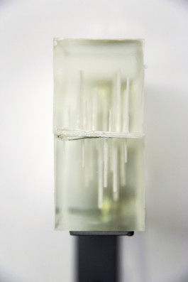 Tubos de acrílico, resina com pigmentos, fio e pregos de cobre