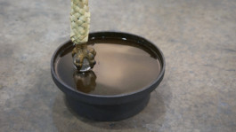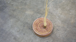 Atrapanovios (peça de artesanato tradicional mexicana feita com folhas de palmeira), lixas gastas em carpintarias portuguesas e Brasileiras, mecanismo de rotação, base de madeira, garra de animal com bola de cristal (usadas como base em bancos antigos de pianistas). Grés preto, água, cornos talhados em forma de pássaro e peixe.