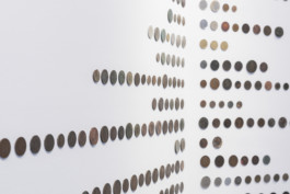 The layout of the coins, not only due to how worn out they are, but also by the look of their figures, also takes us to another dimension of time, associated to the western reading: a ‘left’ associated, metaphorically, to the past and a ‘right’ associated to the future. Under this perspective, the spectator is summoned to connote the work an outer look (from the centre), a frontal vision and a hypothetical present that it lacks.